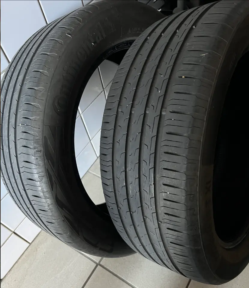 Twee gebruikte zomerbanden van het merk Continental, type EcoContact 6. Dit zijn Mercedes Original (MO) banden, speciaal afgestemd op voertuigen van Mercedes-Benz.