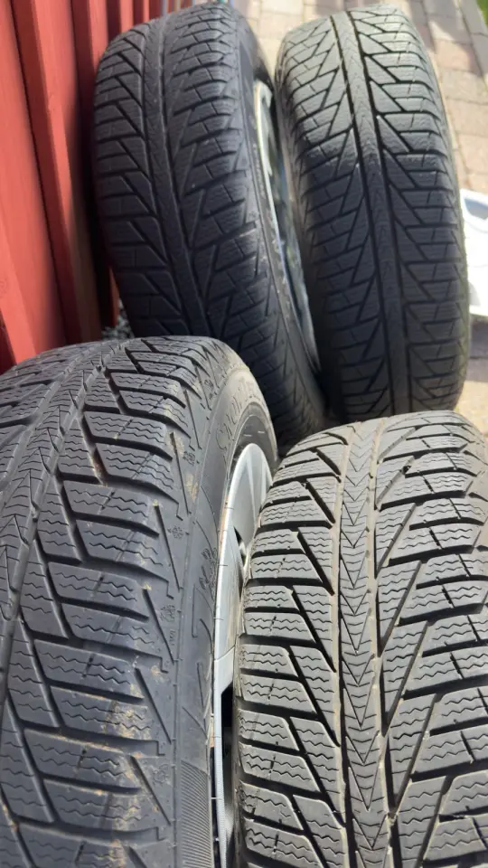 Set winterbanden Viking SnowTech II 185/65 R15 88T op stalen 6Jx15 H2 velgen met wieldoppen. Profiel 6+ mm. Steek 4x100, naaf 60,1 mm, ET ~45. Gebruikt met Nissan Note 2006. Rijden rond en trillingvrij. Past o.a.