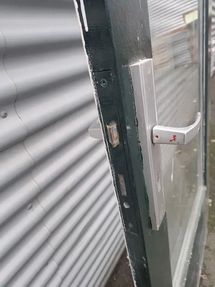 Hardhouten Tuindeur. Hoog: 211½ cm. Breed: 87½ cm. Borst: 44 cm. Dubbelglas: