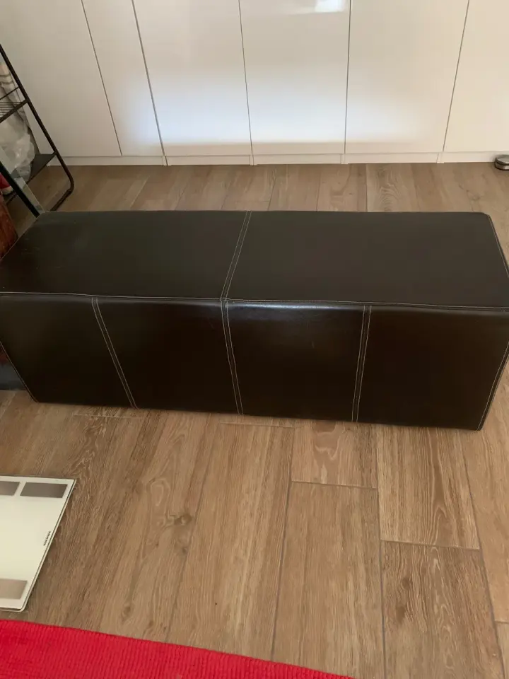 mooie leren side bank 1.40 x 40 ideaal voor zitbank bv douche, kleedruimte,voeteneind bed of gewoon in woonkamer