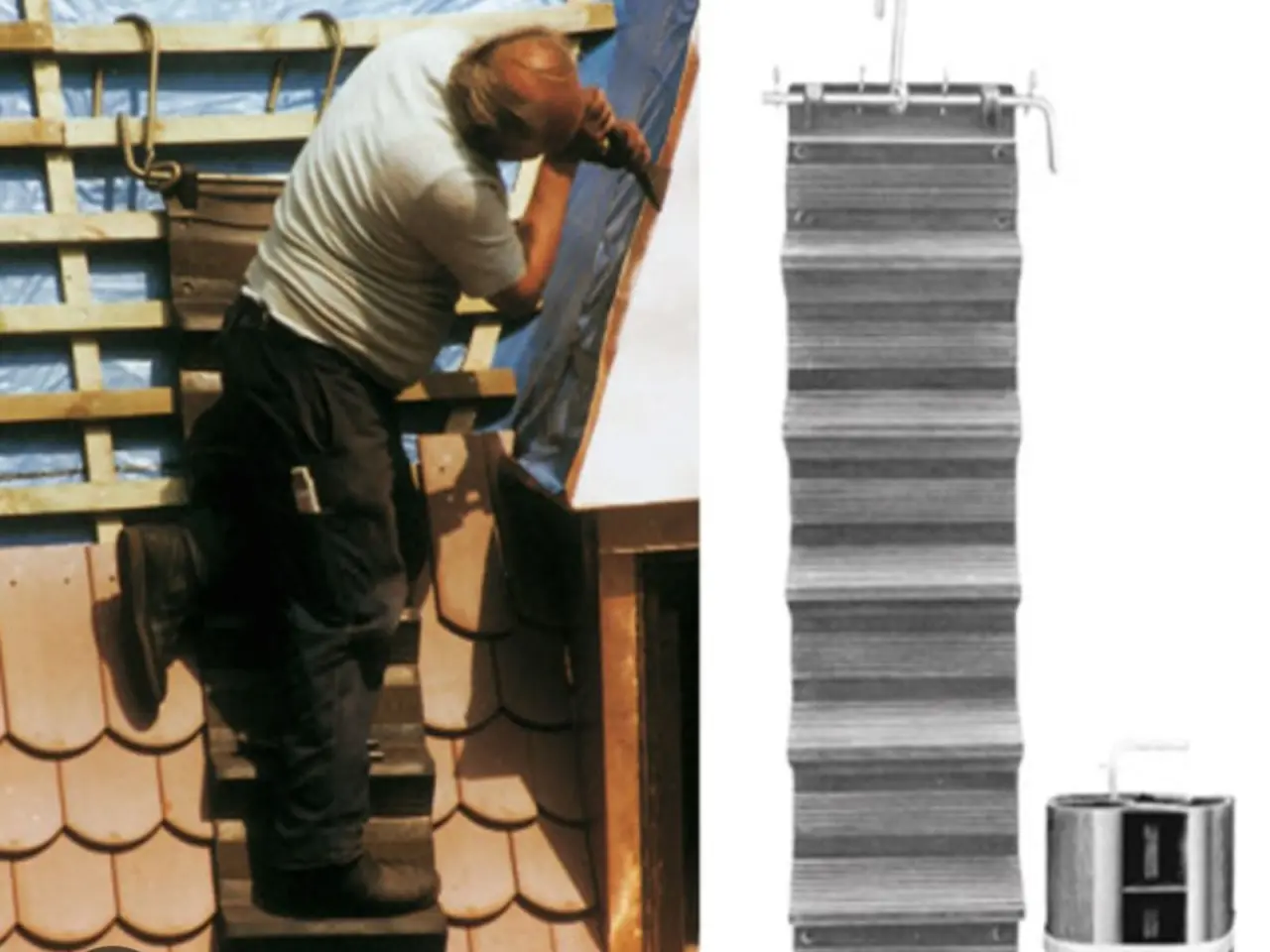 TE KOOP, Flexostep flexibele ladder 160 x 40 cm 8 STUKS NOG BESCHIKBAAR Oprolbaar en te verlengen Afstand treden: 250 mm Hoogte teden: 73 mm Flexibele rubberen rolladder bestemd voor het lopen en werken op hellende daken. De rolladder maakt het ook mogelijk om langdurig zittend, staand of knielend op het dak te werken. Op alle dakoppervlakken in te zetten, zoals leien, pannen, bitumen en staaldaken zonder breuk en beschadiging. De ladder is vervaardigd uit synthetisch rubber op basis van ethyleen-propyleen, bestand tegen ozon, zuurstof, weersinvloeden en vele chemische oplossingen. Middels de ankerhaak te borgen. Controleer voor elk gebruik de algemene staat van de dakladder: Rond de verbindingssleutel dient de dikte van het rubber 10 mm te zijn. Afwezigheid van vuil, vet of vreemde stoffen die gevaarlijk kunnen worden bij het gebruik van de dakladder. Gebruik van de dakladder van -30 °C tot +50 °C mogelijk