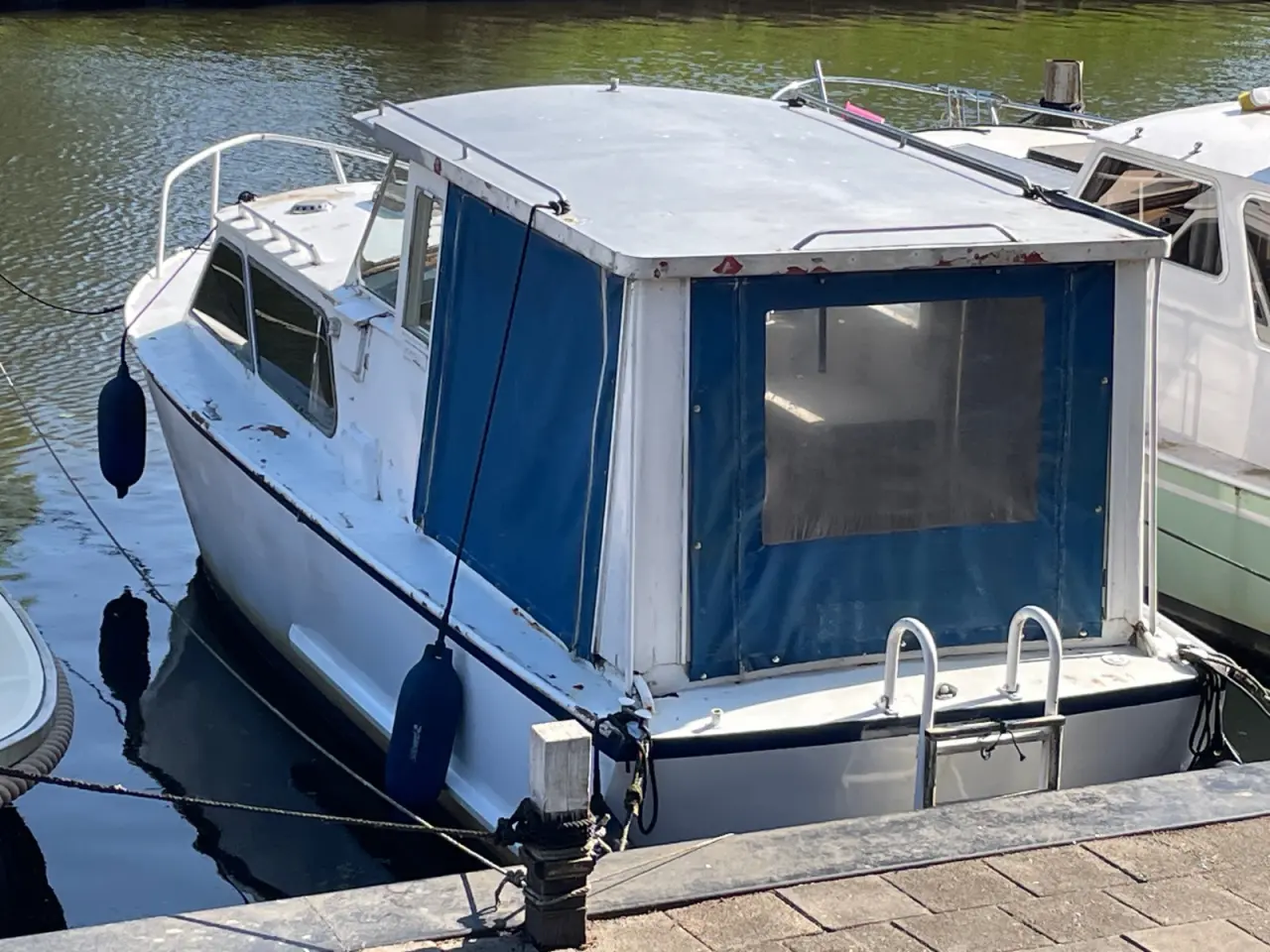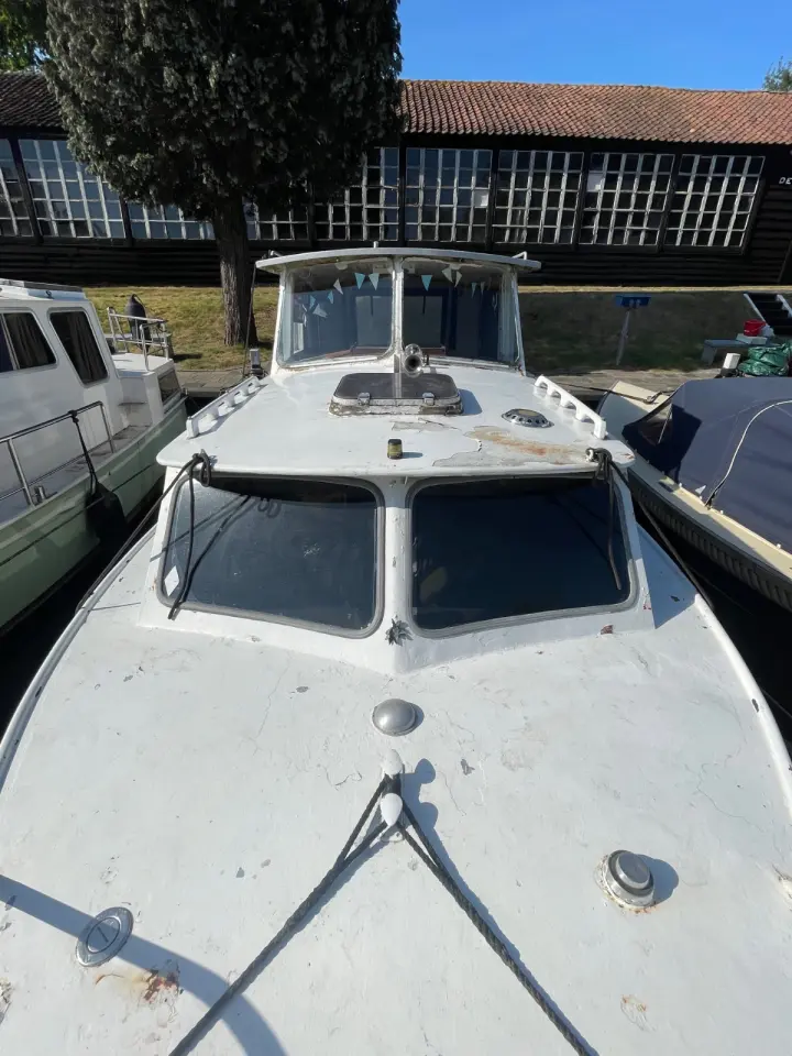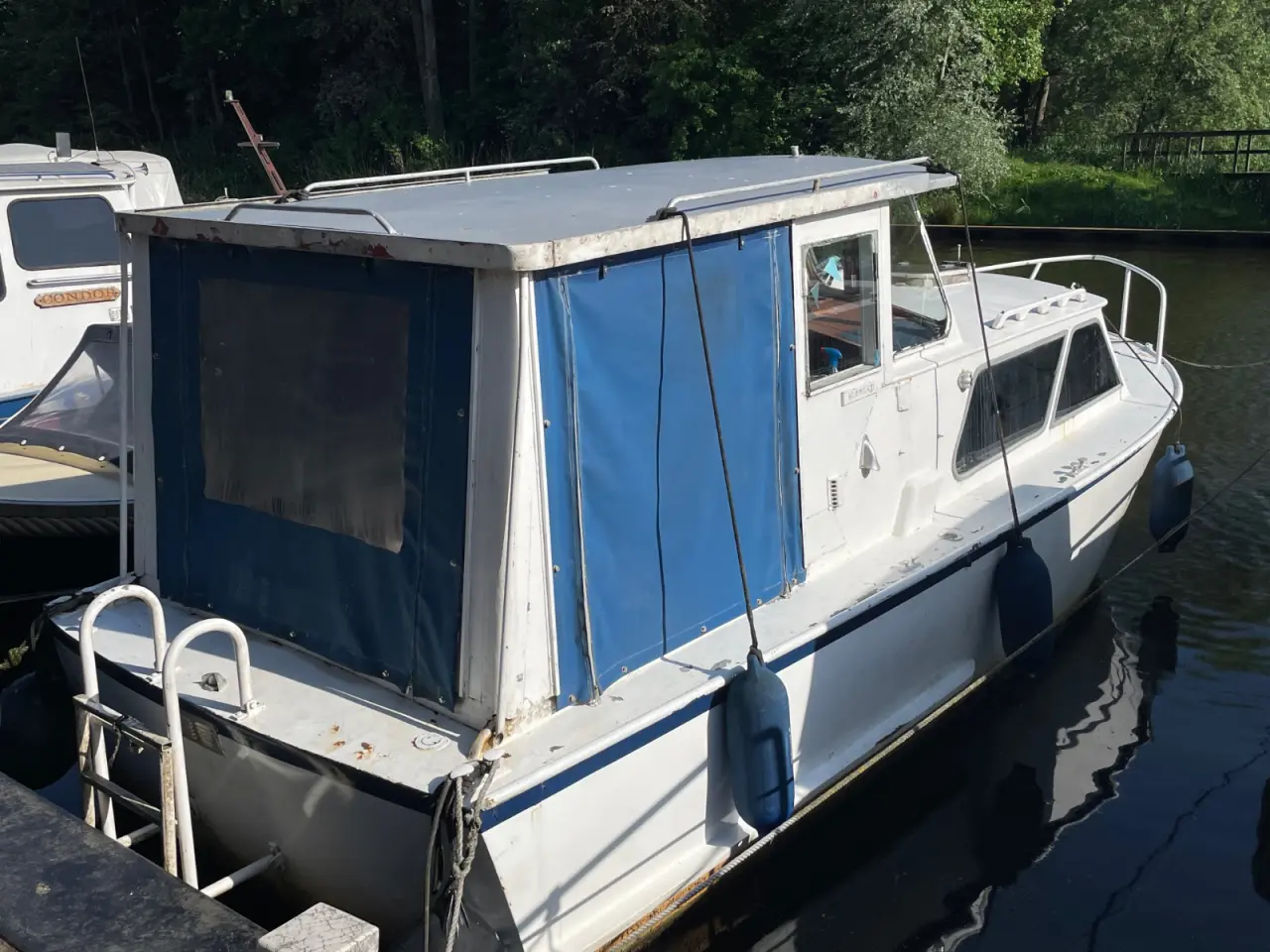 Voor de handige klusser/doe-het-zelver die van varen houdt! Na jaren van plezier en samen met onze 3 kinderen mooie herinneringen gemaakt te hebben, bieden wij (met enige pijn in het hart) onze boot te koop aan. De boot is toe aan (en verdient!!) een mooie opknapbeurt (schilderen en het interieur) er waren plannen, echter ontbreekt het ons aan tijd en helaas gooien persoonljke omstandigheden nu roet in het eten.. Het formaat van de boot is perfect. Zitje achterin, mooi laag bij het water. Als je wil kan je wel met 7 a 8 personen gaan varen! Sowieso met 2 volwassen personen (en evt nog een wat kleiner kind erbij) kan je prima slapen in de kajuit. Bed is gemakkelijk weer terug om te bouwen tot een (klap)tafel, met daaromheen zitjes. Tevens is er een keukenblokje (geen apparatuur)en een afgesloten toiletruimte in de kajuit (met een nieuwe “pot-a-potty”). Met een zitzak of kussens op het voordek, lekker zitten of liggen en genieten maar, van de zon en het uitzicht over het water. Gezien de oersterke stalen constructie is de boot prima geschikt om op te klimmen en vanaf te springen het water in voor een verkoelende duik en vervolgens gemakkelijk de boot weer op te komen middels de vaste zwemtrap. Er is een los anker bij. Wegvaren en het vakantiegevoel komt direct over je heen!