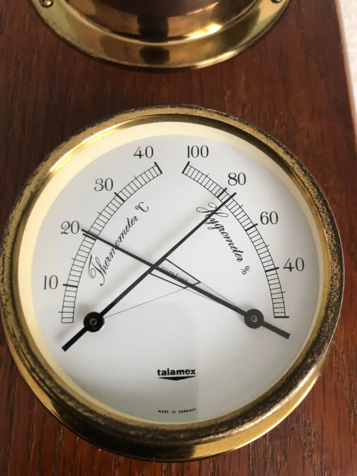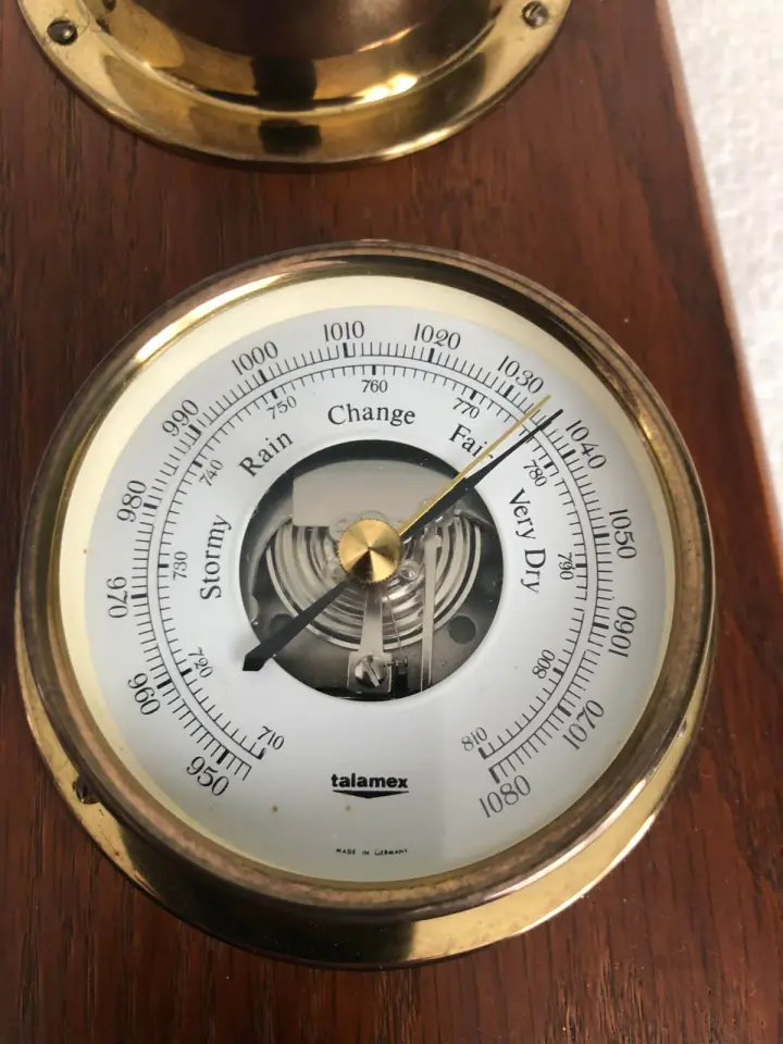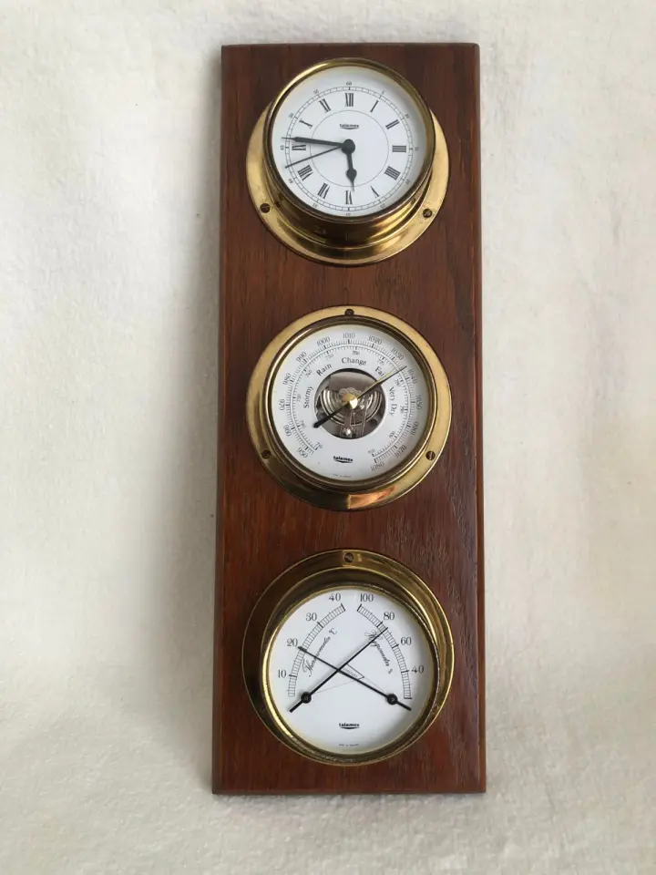 antieke messing barometer/hygro en temperatuur meter en klok