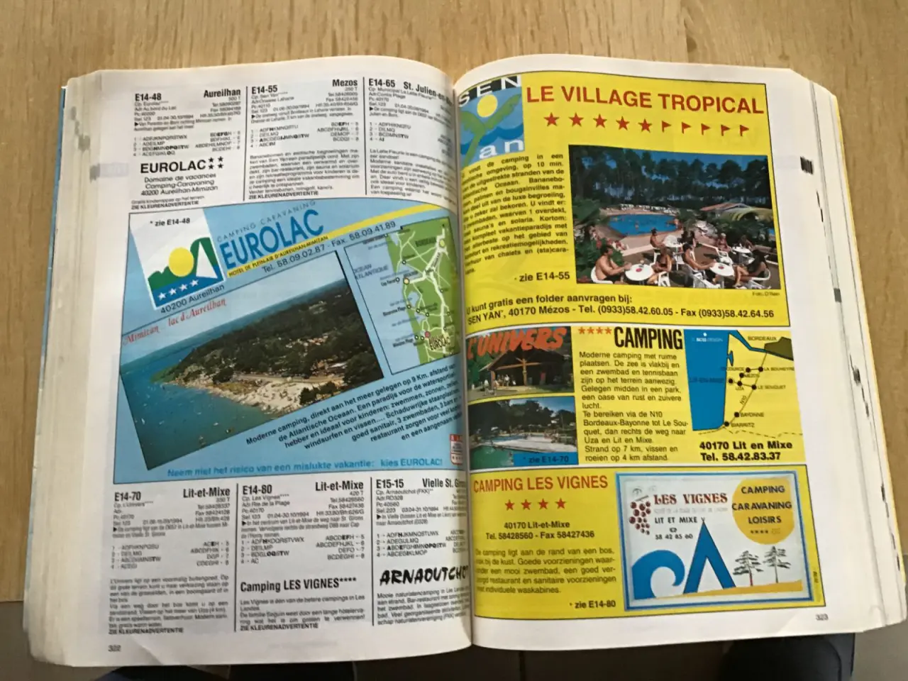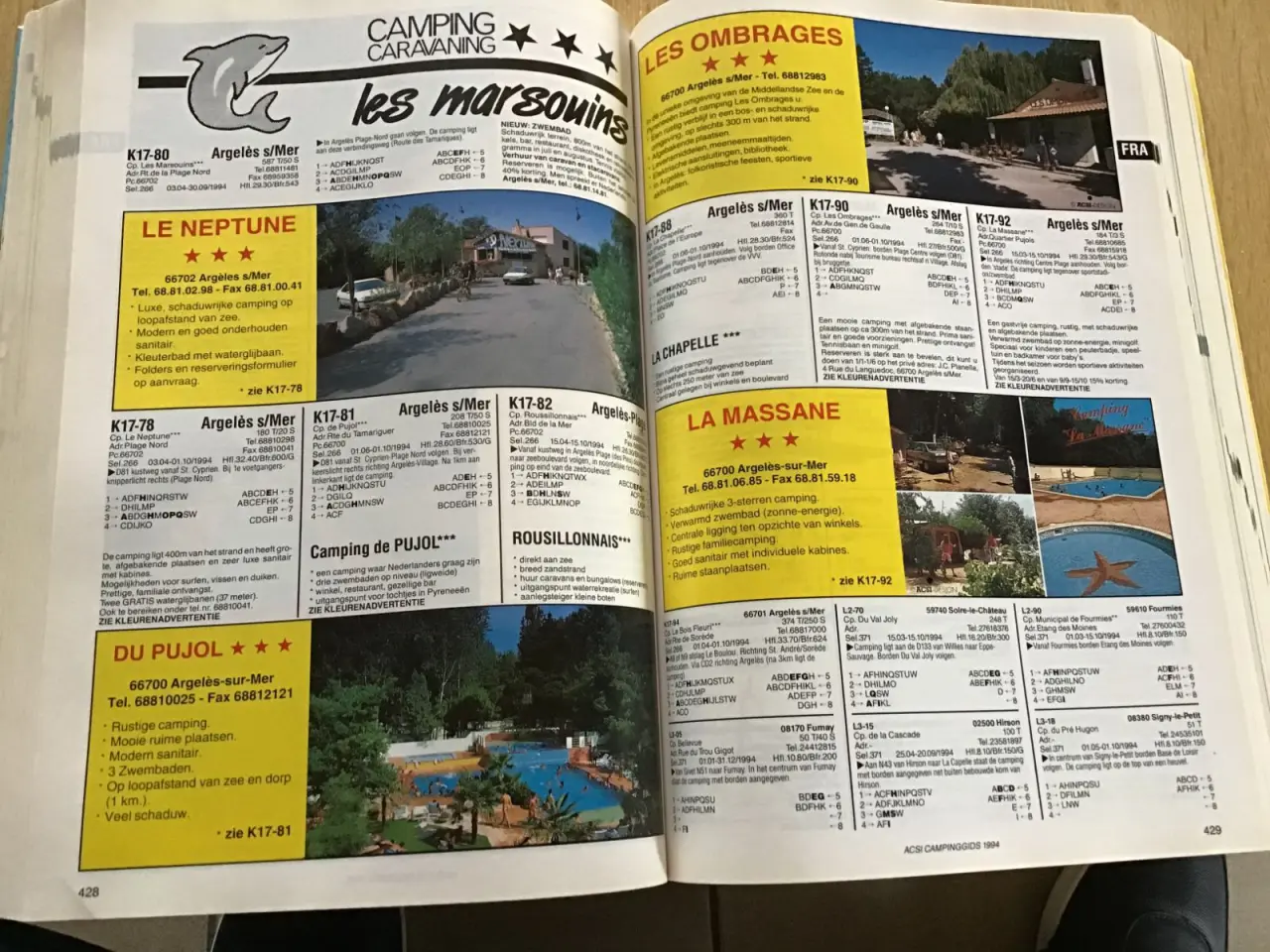 Boek Campingplaatsen internationale gids ,7000 plaatsen Boek uit 1994 ,met 1016 Blz. ,gids voor liefhebbers voor het camperen over heel Europa en Benelux meer dan 7000 campings ter beschikking met elke camping een routebeschrijving ,dus keuze genoeg om in een camping te verblijven of te camperen , enorm vele landen ;zowel in België ,Denemarken ,Duitsland ,Frankrijk ,Engeland ,Schotland ,Wales ,Hongarije ,Ierland ,Italië ,Sadinië ,Sicilië ,Kroatië ,Luxemburg ,Nederland ,Noorwegen ,Oostenrijk ,Polen ,Portugal ,Spanje ,Tsjechië ,Turkije ,Zweden ,Zwitserland ,deze landen staan in het boek met naam van de campings en het wegwijs ervan Plaats genoeg om te camperen, met een caravan ,campingcar ,trekker ,mobilhome ,chalet te huren enz...Komen halen of verzenden met ; Venir le chercher ou je l,envoye avec Bpost ,PostNL of aan huis geleverd of een BPOST ,POSTNL of Afhaalpunt zoeken zo dicht mogelijk bij u woning en gaan ophalen email ; jptv@telenet.be Bekijk ook mijn andere advertenties nog vele boeken te bekijken ;Alvast bedankt Venir le chercher ou je l,envoye avec ; Bpost, PostNL, livré à domicile ou cherchez un point BPOST ,PostNL ou le plus près possible de votre habitation et allez le chercher courrier électronique ; Regarder aussi mes autres annonces ; Merci d,avance