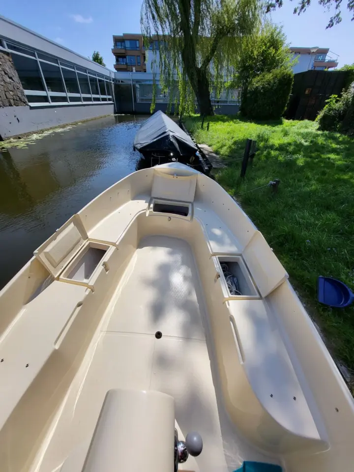 De kuip beschikt over 3 opbergruimtes onder de zitbanken. In de boeg bevindt zich een ankerluik met waterafvoer. Onder de zitbank achterin staat de uitneembare 12 liter benzinetank en de nieuwe (aug. 2023) start accu.